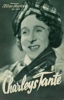 Charley's Aunt (German: Charleys Tante) is a 1934 German comedy film directed by Robert A. Stemmle and starring Fritz Rasp, Paul Kemp, and Max Gülstorff.[1] It is based on the British writer Brandon Thomas's 1892 play Charley's Aunt. The film's sets were designed by art director Franz Schroedter.