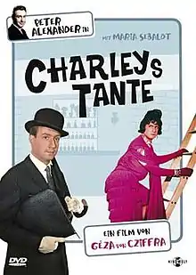 Charley's Aunt (German: Charleys Tante) is a 1963 Austrian comedy film directed by Géza von Cziffra and starring Peter Alexander, Maria Sebaldt and Peter Vogel.[1] It is an adaptation of the 1892 British play Charley's Aunt by Brandon Thomas.