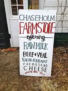 The Chaseholm Farm Creamery is a 350-acre (140 ha) family-run farm in Pine Plains, New York, on the borders of Dutchess and Columbia Counties in New York's Hudson Valley, protected by the Columbia Land Conservancy.[1][2] It works with many farms in the surrounding Hudson Valley as part of the local food movement. The Chaseholm Farm Creamery is currently run by siblings Rory and Sarah Chase.