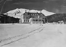 The hotel was lavishly appointed, with panoramic window views, hot and cold running water in every room, and custom-made high-quality furniture.[4] Most of the staff were recruited from overseas.[4] The innovative heating system used enormous boiling-water tanks in the basement and pumped hot water up five storeys; originally coal or oil heated, it was switched to electricity and still operates today.[1] The total cost was £88,000 (well over the contract price) of which the hotel had cost £78,000, while at the request of the Tourist Company another £10,000 had been spent building extra wooden buildings, a garage and a golf course in the front of the hotel. The golf course was designed by an architect serving a prison sentence and built by prison labour.[8] Wigley had led Fletchers to believe that if they overspent the company would be reimbursed by the Mount Cook Tourist Company. Unfortunately due to the Depression it was in difficulties and so would not pay for the increased expenditure. James Fletcher, the head of the company, approached the Prime Minister Sir Joseph Ward and asked him to increase the government loan to £60,000. Ward agreed and Fletcher obtained a promise from Wigley that the bulk of this injection of money would go to pay Fletchers. The Tongariro Park Tourist Company was by now in serious financial trouble, which was not helped by spending lavishly fitting out the hotel. Wigley reneged on the deal and passed on only £10,000. The onset of the depression delayed hopes of a tourism boom; to secure their debt Fletchers put the Tongariro Park Tourist Company into receivership in February 1931, took control of the hotel, and ran it for 3 months before walking away with a loss of £19,000, (which included £1000 of losses incurred during their period of ownership).[9]