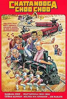 Chattanooga Choo Choo is a 1984 American comedy film starring Barbara Eden, George Kennedy, Melissa Sue Anderson and Joe Namath, directed by Bruce Bilson[2] which was released on May 25, 1984. The film is inspired by the popular 1941 song "Chattanooga Choo Choo" originally recorded by the Glenn Miller Orchestra and featured in the 20th Century Fox film Sun Valley Serenade.