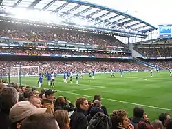 Chelsea are among the most widely supported football clubs in the world.[136][137] They have the sixth highest average attendance in the history of English football,[138] and regularly attract over 40,000 fans to Stamford Bridge; they were the seventh best-supported Premier League team in the 2013–14 season, with an average gate of 41,572.[139] Chelsea's traditional fanbase comes from all over the Greater London area including working-class parts such as Hammersmith and Battersea, wealthier areas like Chelsea and Kensington, and from the home counties. There are also numerous official supporters clubs in the United Kingdom and all over the world.[140] Between 2007 and 2012, Chelsea were ranked fourth worldwide in annual replica kit sales, with an average of 910,000.[141] As of 2023, Chelsea has 118.9 million followers on social media, the fourth highest among football clubs.[142]