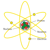 The atom is the basic unit of chemistry. It consists of a dense core called the atomic nucleus surrounded by a space occupied by an electron cloud. The nucleus is made up of positively charged protons and uncharged neutrons (together called nucleons), while the electron cloud consists of negatively charged electrons which orbit the nucleus. In a neutral atom, the negatively charged electrons balance out the positive charge of the protons. The nucleus is dense; the mass of a nucleon is approximately 1,836 times that of an electron, yet the radius of an atom is about 10,000 times that of its nucleus.[18][19]