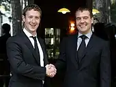 On October 1, 2012, Zuckerberg met with then Russian Prime Minister Dmitry Medvedev in Moscow to stimulate social media innovation in Russia and to boost Facebook's position in the Russian market.[52][53][54] Russia's communications minister tweeted that Prime Minister Dmitry Medvedev urged the social media giant's founder to abandon plans to lure away Russian programmers and instead consider opening a research center in Moscow. In 2012, Facebook had roughly 9 million users in Russia, while domestic clone VK had around 34 million.[55][56] Rebecca Van Dyck, Facebook's head of consumer marketing, said that 85 million American Facebook users were exposed to the first day of the Home promotional campaign on April 6, 2013.[57]