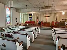 The church contains several beautiful historic stained glass windows, some dating back to the late 1800's. Several of these were damaged by an EF-1 tornado on June 13, 2022. They are restored as of June, 2023.