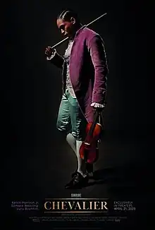 In June 2020, it was reported that Searchlight Pictures had bought a feature pitch from Atlanta's Stefani Robinson for Chevalier de Saint-Georges, a biopic about the musician of the same name, with Stephen Williams attached to direct.[3] In March 2021, it was reported that Kelvin Harrison Jr. was cast in the lead role of Saint-Georges.[4] In July 2021, Samara Weaving joined the cast as the female lead.[5] The following month, Lucy Boynton and Minnie Driver were added to the main cast, with Alex Fitzalan cast in a supporting role and the film's title shortened to Chevalier.[6][7][8]