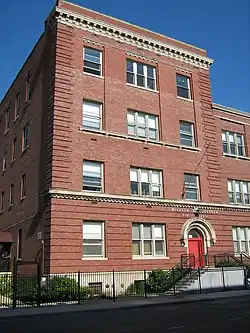 Built in 1906–07, it was one of the many telephone exchanges built in Chicago in the late 19th and early 20th centuries as telephone use grew rapidly. Chicago architecture firm Pond and Pond designed the Classical Revival building. The building's design is noteworthy for its decorative elements, which include a dentillated cornice and belt course and an arched entrance with floral corbels. Early telephone exchanges were staffed almost entirely by women, and Pond and Pond believed that a decorative design would be more inviting to female workers than a plain and functional building. Major Chicago firm Holabird & Roche designed three additions to the building in 1913, 1928, and 1948. The telephone exchange closed in the 1960s, and the building was subsequently used by the Wilhelm K. Roentgen Elementary School through the 1990s.[2]