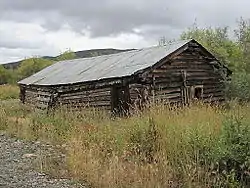 The Chicken Historic District encompasses part of the historic mining district of Chicken, Alaska. It is located at milepost 66.5 on the north side of the Taylor Highway, and includes fifteen buildings built between 1908 and 1967. Most of these are single-story wood-frame structures, with either metal or board-and-batten siding, although there are also some log structures. Many of these buildings were erected by the Fairbanks Exploration Company, which ran the gold mining operations in the area. Notable buildings include the bunkhouse, a gabled log structure, and the Chicken Creek Roadhouse, built in 1906, which was originally two stories in height but was reduced to a single story in 1924. The district also includes a section of water pipeline built by the company to bring water to the area from Mosquito Creek, a distance of about 1 mile (1.6 km). The camp was used until the company ended mining operations in 1967.[2]