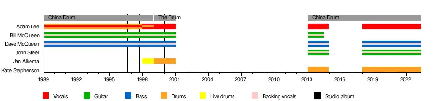 - Adam Lee – vocals (1989–2000, 2013–2014, 2018–present), drums (1989–1999)