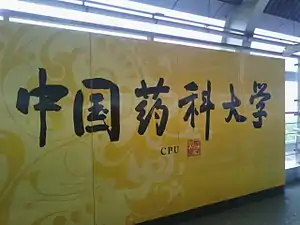 China Pharmaceutical University station (Chinese: 中国药科大学站), is a station of Line 1 of the Nanjing Metro. It began operations on 28 May 2010,[1][2] as part of the southern extension of line 1 from Andemen to this station. The rail depot for the southern extension of Line 1 is located to the west of the station.[3]