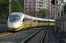 CRH2C-2061 (formerly CRH2-061C) is the first 300 km/h (186 mph) high speed trainset manufactured by CSR Sifang. The trainset rolled off the production line on 22 December 22, 2007[4] and was named CRH2-300, as the prototype of CRH2C. During a test on 22 April 2008, CRH2-061C reached a top speed of over 370 km/h (230 mph) on Beijing-Tianjin high-speed rail[5] and on 11 December 2009 reached an improved top speed of 394.2 km/h (245 mph) on the Zhengzhou-Xi'an high-speed railway line.[6] It now serves as a 350 km/h inspection train, equipped with track inspection, catenary examination, and signal inspection devices.