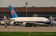 China Southern Airlines Company Limited, also known as China Southern, is an airline headquartered in Baiyun District, Guangzhou, Guangdong Province and is the largest airline in China. Established on 1 July 1988 following the restructuring of the CAAC Airlines that acquired and merged a number of domestic airlines, the airline became one of China's "Big Three" airlines (alongside Air China and China Eastern Airlines), the world's sixth-largest airline measured by passengers carried and Asia's largest airline in fleet size, revenue, and passengers carried. With its main hubs at Guangzhou Baiyun International Airport and Beijing Daxing International Airport, the airline operates more than 2,000 flights to more than 200 destinations daily and was a member of SkyTeam until 1 January 2019. The airline started a frequent flyer program partnership with American Airlines in March 2019. The logo of the airline consists of a kapok flower (which is also the city flower of Guangzhou) on a blue tail fin.[3] The company slogan is Fly towards your dreams (Chinese: 飞向您的梦想).