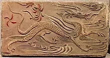 Dragons or dragon-like depictions have been found extensively in neolithic-period archaeological sites throughout China. Some of earliest depictions of dragons were found at Xinglongwa culture sites. Yangshao culture sites in Xi'an have produced clay pots with dragon motifs. A burial site Xishuipo in Puyang which is associated with the Yangshao culture shows a large dragon mosaic made out of clam shells.[25] The Liangzhu culture also produced dragon-like patterns. The Hongshan culture sites in present-day Inner Mongolia produced jade dragon objects in the form of pig dragons which are the first 3-dimensional representations of Chinese dragons.[26]