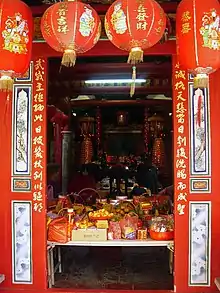 Altar to the Five Officials worshipped inside the Temple of the Five Lords in Haikou, Hainan.