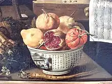 French painters, such as François Desportes and Paul Gauguin, also represented Chinese bowls in their still-life paintings. Some like Jacques Linard in 1627 even painstakingly reproduced Chinese writing, in Les cinq sens et les quatre éléments, 1627.[4][5]