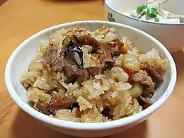 Chinese sticky rice (Chinese: 糯米飯; pinyin: nuòmǐ fàn or Chinese: 油飯; pinyin: yóufàn; Pe̍h-ōe-jī: iû-pn̄g) is Chinese rice dish commonly made from glutinous rice and can include soy sauce, oyster sauce, scallions, cilantro and other ingredients.[1][2][3]