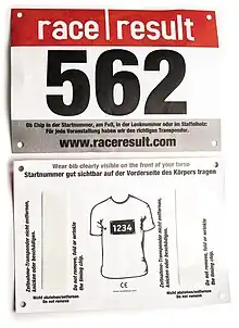In the past the transponder was almost always worn on the athletes running shoe, or on an ankle band. This enabled the transponder to be read best on antenna mats because the distance between the transponder and readers antenna is minimized offering the best capture rate. Transponders may be threaded onto the shoe laces for running. For triathlon a soft elastic ankle band holds the transponder to the leg and care is taken to ensure the transponder is in the correct orientation or polarity for maximum read performance. Transponders have also been placed on the race bib. In the past 5 years the newer UHF systems use transponders placed on the shoe lace, or stuck to the race number bib. In both cases, care must be taken to ensure the UHF tag does not directly touch a large part of the skin as this affects read performance. Despite this, UHF Systems have read performances as good (if not better) than the conventional low and high frequency systems. Because these UHF tags are made in huge volumes for industrial applications, their price is much lower than that of conventional re-usable transponders and the race does not bother to collect them afterwards. As of 2015, many UHF timers use a combination of ground antennas with panel antenna(s) mounted on a tripod at the side of the race course.[2]