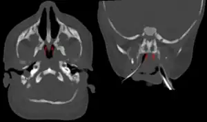 | Diagnostic method | inability to place nasal catheter, CT scan |