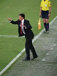 On 19 January 2012, Coleman was appointed team manager of the Wales national team, as successor to his friend Gary Speed, who had died the previous November.[29] After letting his assistant Osian Roberts take charge in Speed's memorial match against Costa Rica in February,[30] his first game in charge was a 2–0 defeat against Mexico at the MetLife Stadium in New Jersey on 27 May.[31]