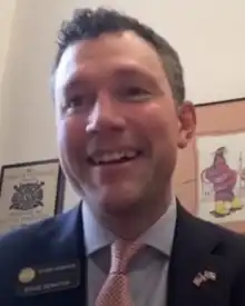 Hansen announced on October 2, 2019, that he would run to succeed Court in the state senate in the 2020 election.[12] Court received a diagnosis of Guillain–Barré syndrome on December 31, and resigned on January 16, 2020.[13] Attorney General Phil Weiser nominated Hansen to replace Court at the vacancy committee vote and Representative Janet Buckner seconded his nomination. Ninety-five of the one hundred twenty vacancy committee members voted for him against four other candidates on January 16, and he was sworn in on January 21.[3][14][15][16] A vacancy committee voted to appoint Steven Woodrow to replace Hansen in the state house on February 4.[17]