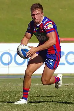 Randall played his rugby league for Lakes United up until 2018,[2] with some games for the Newcastle Knights' Canterbury Cup NSW team during the 2018 season.[3] In 2019, he became a regular for the Knights' Canterbury Cup NSW side and earned a development contract for the NRL squad.[4][5]