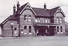At the time of the school's decision to relocate, the London, Brighton and South Coast Railway (LB&SCR) had been considering whether to stimulate residential development in the area by opening a station at Stammerham which would be called West Horsham.[9] With the arrival of the school, the LB&SCR believed that even more traffic would be generated and decided to construct a lavish station building at a cost of £30,000 (equivalent to £3,464,962 in 2021[lower-alpha 1]).[12][9][13][14][15] The school partly financed the construction of the station which consequently was built to a similar style as the school's own buildings,[16] using red brick from the nearby Southwater brickworks.[11]
