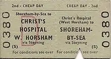 The station opened on 28 April 1902,[40][41][42][43] although the official ceremony took place on Thursday 1 May 1902.[38] The station was initially known as Christ's Hospital (West Horsham), but when tickets were issued to travel to Christ's Hospital school for its opening ceremony on 29 May 1902, they were made out to Stammerham Junction.[38] Special trains bound for the school departed from London Victoria at 1520, London Bridge at 1525 and Sutton at 1540, all due to arrive at Christ's Hospital at 1645.[38] Some of the schoolmasters were dispatched to Victoria and London Bridge to meet the pupils.[38]