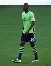 Benteke then scored Villa's fourth goal in a 4–1 League Cup win over Norwich City at Carrow Road.[19] Benteke further added to his impressive start in Premier League football by scoring two goals in Villa's 3–1 win against Liverpool at Anfield on 15 December. In addition to the two goals, he also assisted Villa's second goal with a back-heel to Andreas Weimann. Paul Lambert said afterwards that 'Benteke has been unbelievable', after already stating midweek (post–Norwich) that 'you run out of things to say about the guy, how well he's performing and how young he is'.[20] Around Christmas time, Tottenham Hotspur manager André Villas-Boas was reportedly interested in signing Benteke, referring to him as the season's "surprise package".[21]