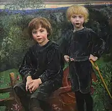 Herringham was involved in founding the Society of Painters in Tempera in 1901. It had little impact on academic painters, but influenced Joseph Southall.[2] The members included Mary Sargant Florence[27] and Margaret Gere; the Society flourished to around 1909, and had around 50 members, holding exhibitions in 1901, 1905 and 1909.[28] It merged into a new Mural Decorators' Society in 1912.[27]