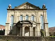 He died in 1838, at the house of Daniel Davies (1797-1876) at Swansea, while on a preaching tour in South Wales, and was buried in the grounds of Swansea's Bethesda Chapel.[7][8] His funeral was one of the largest ever attended in the country.[9] It is believed to bring good luck if you kiss the headstone of Christmas Evans, making it the Swansea version of the Blarney Stone.