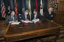 Eisgruber has served on several boards, including the academic advisory board of Coursera, a provider of massive open online courses; the Board of Trustees of the Educational Testing Service; the Board of Trustees of Princeton University Press;[13] the Board of Trustees of ITHAKA and Artstor; and the Board of Directors of Liulishuo. He is also a steering committee member of the American Talent Initiative and a member of the Global University Leaders Forum of the World Economic Forum.[14]