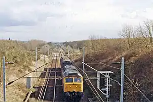 The station was opened on 13 May 1912, to serve the villages of Church Brampton and Harlestone, but primarily the newly opened Northamptonshire Golf Club. It was opened by the London & North Western Railway, which became the London, Midland and Scottish Railway in 1923. The station had a short life of only 19 years, it was closed on 18 May 1931; the reason for the closure was stated to be that most golfers by then arrived by car.[1] All traces of the station were removed when the line was electrified in the 1960s.