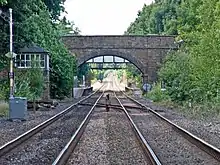 In 1914, the station was relocated just to the south of the Sandford Avenue road bridge. New station buildings were erected, but these were demolished in 1970, the station having become unstaffed in 1967. Today, the only station structures in use are two passenger shelters on the platforms and a footbridge.[1]