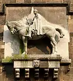 The equestrian sculpture on the wall of the southern steeple was placed there in 1909. It shows the Prussian field marshal Helmut Graf von Moltke and was donated by the banker Bernhard Loose from Bremen, who already died on 31 March 1902. It was designed by Heinrich Jennen from Berlin-Charlottenburg and sculpted by Hermann Hahn of Munich. Like the sculpture itself, the inscription above it expresses the militarism of the period: