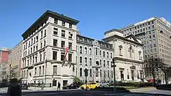 The Church of St. Ignatius of Loyola is a Catholic parish church located on the Upper East Side of Manhattan, New York City, administered by the Society of Jesus (Jesuits). The parish is under the authority of the Archdiocese of New York, and was established in 1851 as St. Lawrence O'Toole's Church. In 1898, permission to change the patron saint of the parish from St. Lawrence O'Toole to St. Ignatius of Loyola was granted by Rome.[1] The address is 980 Park Avenue, New York City, New York 10028. The church on the southwest corner of Park Avenue and 84th Street is part of a Jesuit complex on the block that includes Wallace Hall, the parish hall beneath the church, the rectory at the midblock location on Park Avenue, the grade school of St. Ignatius's School on the north midblock location of 84th Street behind the church and the high school of Loyola School (also 980 Park Avenue) at the northwest corner of Park Avenue and 83rd Street. In addition, another Jesuit high school, Regis High School (55 E 84th Street), occupies the midblock location on the north side of 84th Street. The church was added to the National Register of Historic Places on July 24, 1980.[3]