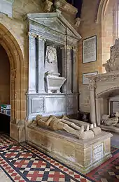The north transept of the church contains monuments to the Phelips family, of Montacute House, including David and Ann, who died in 1484, and Bridget, who died 1508. There are canopied effigies of Thomas, died 1588, and Elizabeth, died 1598. On the west wall is a marble monument to Edward, who died in 1680.[18]