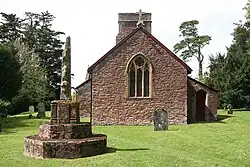 In the churchyard is a cross which may date from the original construction of the church in the 13th century or from the 15th century.[2] It has an octagonal base with a tapering 1.9 metres (6 ft 3 in) shaft with a carving of a male figure, however the head of the cross is missing.[2]