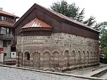 The Church of Saint Paraskevi (Bulgarian: църква „Света Параскева“, tsarkva „Sveta Paraskeva“, Byzantine Greek: Ναός Αγίας Παρασκευής) is a partially preserved medieval Eastern Orthodox church in Nesebar (medieval Mesembria), a town on the Black Sea coast of Burgas Province in eastern Bulgaria. It was most likely built in the 13th or 14th century and forms part of the Ancient Nesebar UNESCO World Heritage Site. The Church of Saint Paraskevi features a single nave and a pentagonal apse as well as rich exterior decoration. Its dome and the belfry surmounting the narthex have not been preserved today, and it is unknown which of the three saints named Paraskevi it was dedicated to.