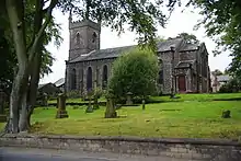 Reverend George Lloyd, (1820–1885) was Curate in Charge of Thurstonland under R. Collins, Vicar of Kirkburton, from 1861 to 1865, using the old dissenters' chapel room before the present building existed.[35][36] From 1865 until at least the end of the 1870s he was curate of Trimdon in County Durham, Church Gresley in South Derbyshire and Cramlington in Northumberland.[35] He was an outspoken man who once received an assassination threat.[37] He was the leading founding member of the Huddersfield Archaeological and Topographical Association, which was later to become the Yorkshire Archaeological Society. The society was founded in 1863 for the purpose of funding and organising excavations at Slack Roman fort. These excavations were initially supervised and documented by Lloyd himself.[38] His excavations were partially funded and supported by the Earl of Dartmouth who later funded the building of St Thomas' Church.[38]