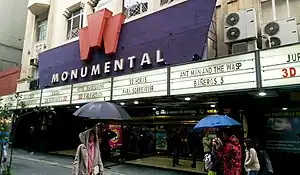Cine Monumental is a cinema at the junction of Calle Lavalle and Calle Esmerelda in Buenos Aires, Argentina. One of the classical cinemas of the country, built in the Art Deco style, it opened in 1931. With its grand auditorium seating 2,300, it acquired the nickname "The Cathedral of Cinema in Argentina". In the post-war years it was used mainly for stage shows, but in 1972 it was converted back to a cinema, with four screens. It closed in 1991, but was since refurbished and reopened ten years later.[1] It is now operated by Cines Multiplex.