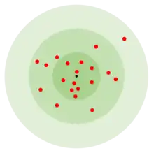 In the military science of ballistics, circular error probable (CEP)[1] (also circular error probability[2] or circle of equal probability[3]) is a measure of a weapon system's precision. It is defined as the radius of a circle, centered on the mean, whose perimeter is expected to enclose the landing points of 50% of the rounds; said otherwise, it is the median error radius.[4][5] That is, if a given munitions design has a CEP of 100 m, when 100 munitions are targeted at the same point, 50 will fall within a circle with a radius of 100 m around their average impact point. (The distance between the target point and the average impact point is referred to as bias.)