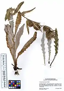 Cirsium hookerianum, common name Hooker's thistle or white thistle,[2] is a North American species of thistle native to western Canada and the northwestern United States. It is found in the northern Rocky Mountains as well as in some of the northern Cascades and Coast Ranges, in Alberta, British Columbia, Washington, Idaho, Montana, and Wyoming.[3]
