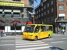 The small buses and one-way route was well suited for the narrow and often one-way streets of inner Copenhagen (Indre By). The buses make almost no noise compared to regular buses and are the first of their kind in Denmark.[1]