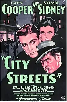 City Streets is a 1931 American Pre-Code film noir that is directed by Rouben Mamoulian from a story by Dashiell Hammett and stars Gary Cooper, Sylvia Sidney and Paul Lukas.