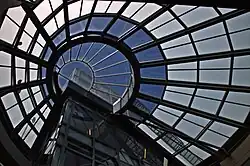 Some of the film was shot at Lake Tahoe's surrounding areas and Kern County.[26] The "falling" scene was partially shot at the Los Angeles Bank of America, while Cage was placed on a moving rig over a bluescreen.[25] Ryan's death scene was filmed on Old Mill Road in Crestline, California.[26] The library scenes were shot at San Francisco Public Library.[19] For angel scenes shot at Malibu Beach, though the characters are not physical beings, it was decided that the angels would have briefly visible footprints to avoid the perception that the sand was too hard to leave imprints. Thus, Nelson erased the footprints soon after they are first seen.[25]
