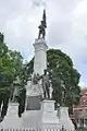 A Civil War Memorial stands in downtown Webster, Massachusetts, in front of the town hall as one part of a series of war monuments called Honor Court. This memorial was dedicated in 1907 and consists of a central tower with a bronze statue of a soldier on top. Four other bronze statues of soldiers stand at each of the four corners: an infantryman, artilleryman, cavalryman, and sailor.[1]