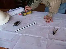 ![]() Tennessee Valley Authority civil engineers monitoring water flow on a scale model of Tellico Dam | |