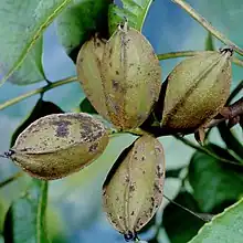 Cladosporium caryigenum is a synonym of Fusicladium effusum, the plant pathogen which causes pecan scab. Pecan scab is the most economically significant disease of pecan (Carya illinoinensis) in the southeastern United States.[1] In 2010, Seyran and colleagues used sequencing of the mitochondrial gene for cytochrome b to conclusively classify the pecan scab fungus as Fusicladium effusum.[2]