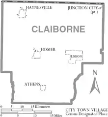 Claiborne Parish (French: Paroisse de Claiborne) is a parish located in the northwestern section of the U.S. state of Louisiana. The parish was formed in 1828,[1] and was named for the first Louisiana governor, William C. C. Claiborne. As of the 2020 census, the population was 14,170.[2] The parish seat is Homer.[3]