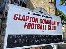 On 17 September 2019, it was confirmed that Clapton Community had been awarded the lease at The Old Spotted Dog, following Clapton FC's eviction.[11] On 24 July 2020, Clapton Community announced that they had purchased the freehold for The Old Spotted Dog and become the new owners.[12]
